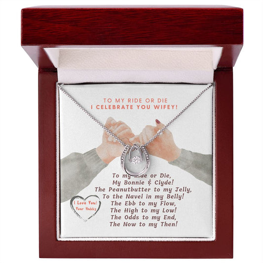 I Celebrate You Wifey, my Ride or Die - Lucky in Love Necklace - Perfect Gift for the Woman you're in Love with - I Love you honey!
