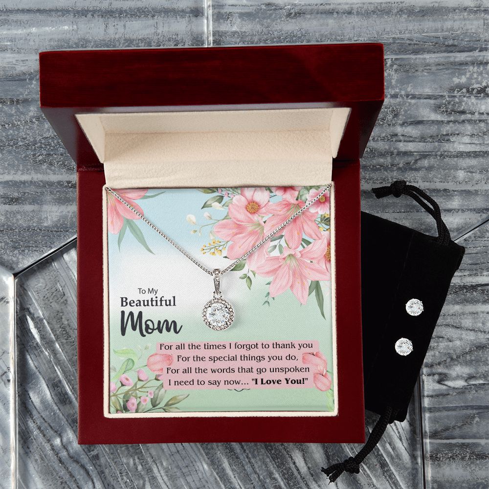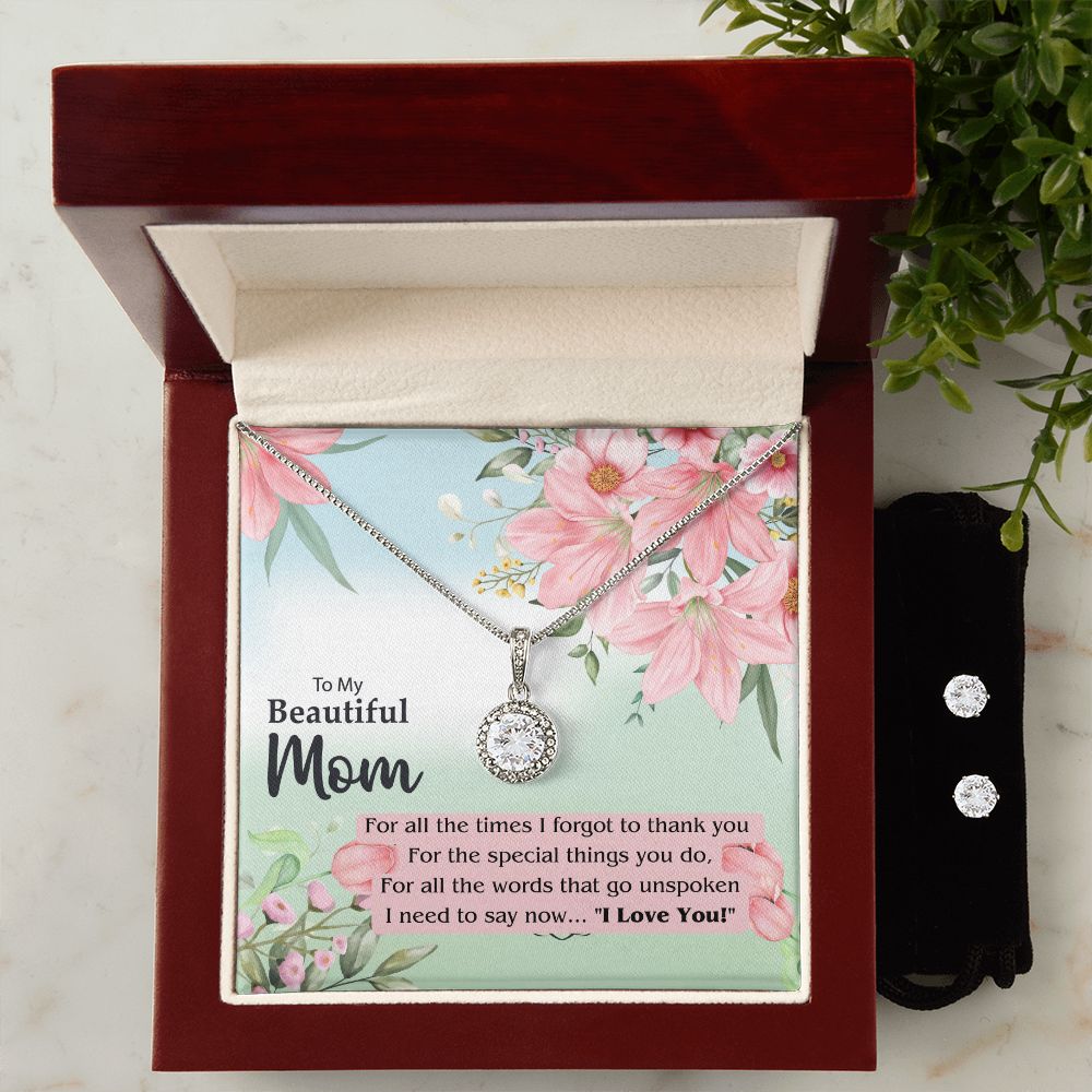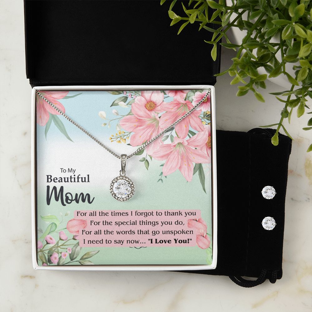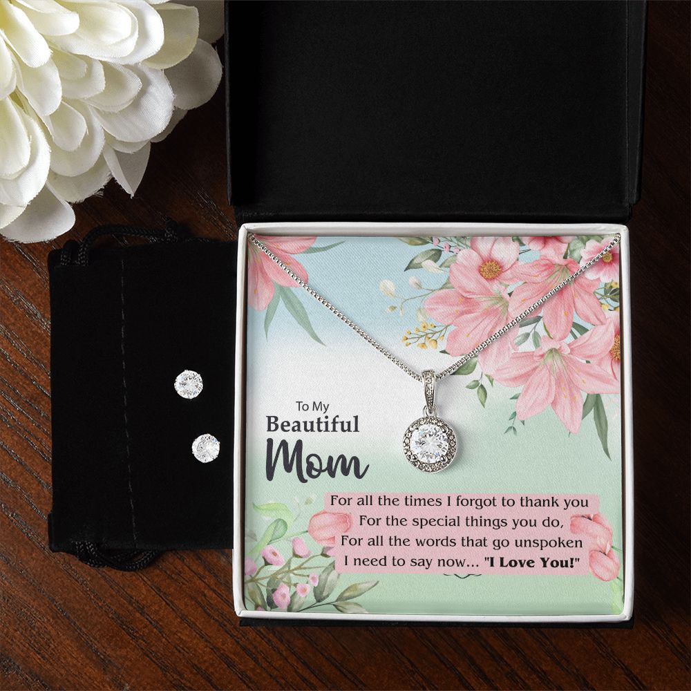 To my Beautiful Mom - Eternal Hope Necklace & Clear CZ Earrings Set - Perfect Gift For Mom for Mother's Day!