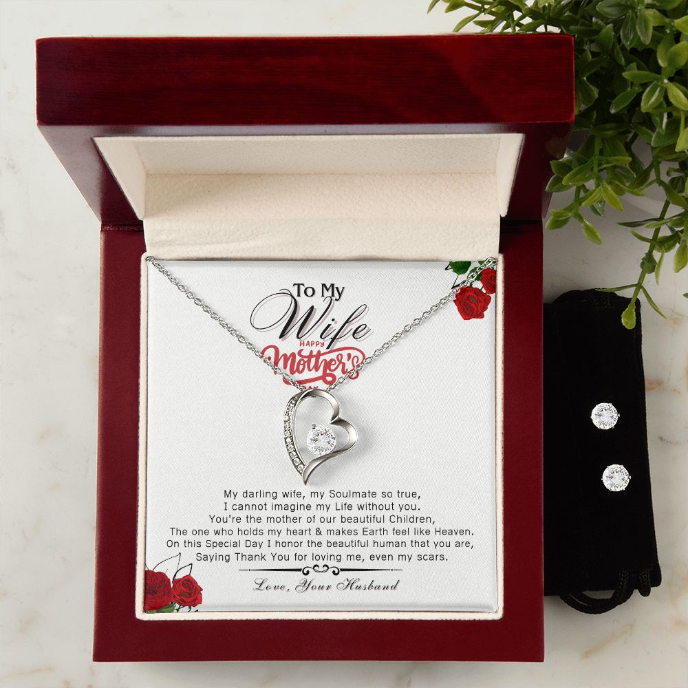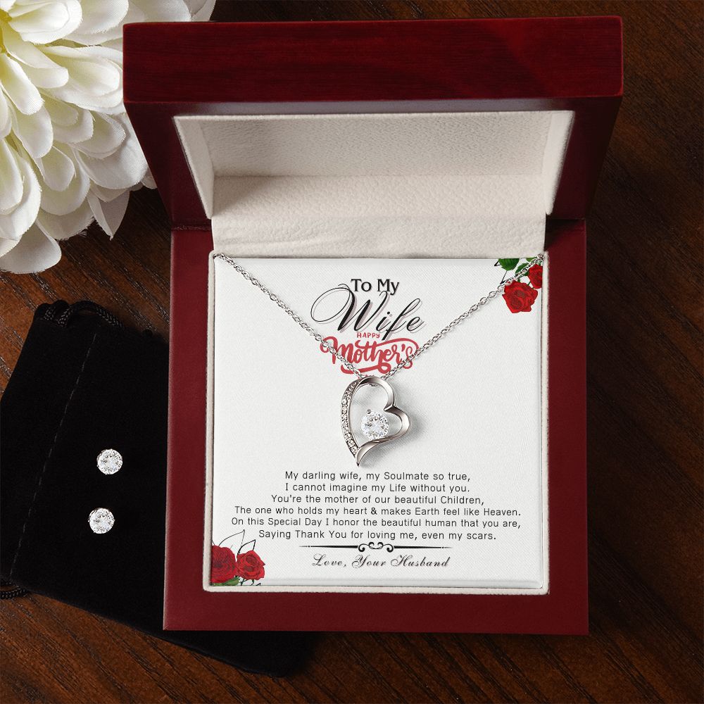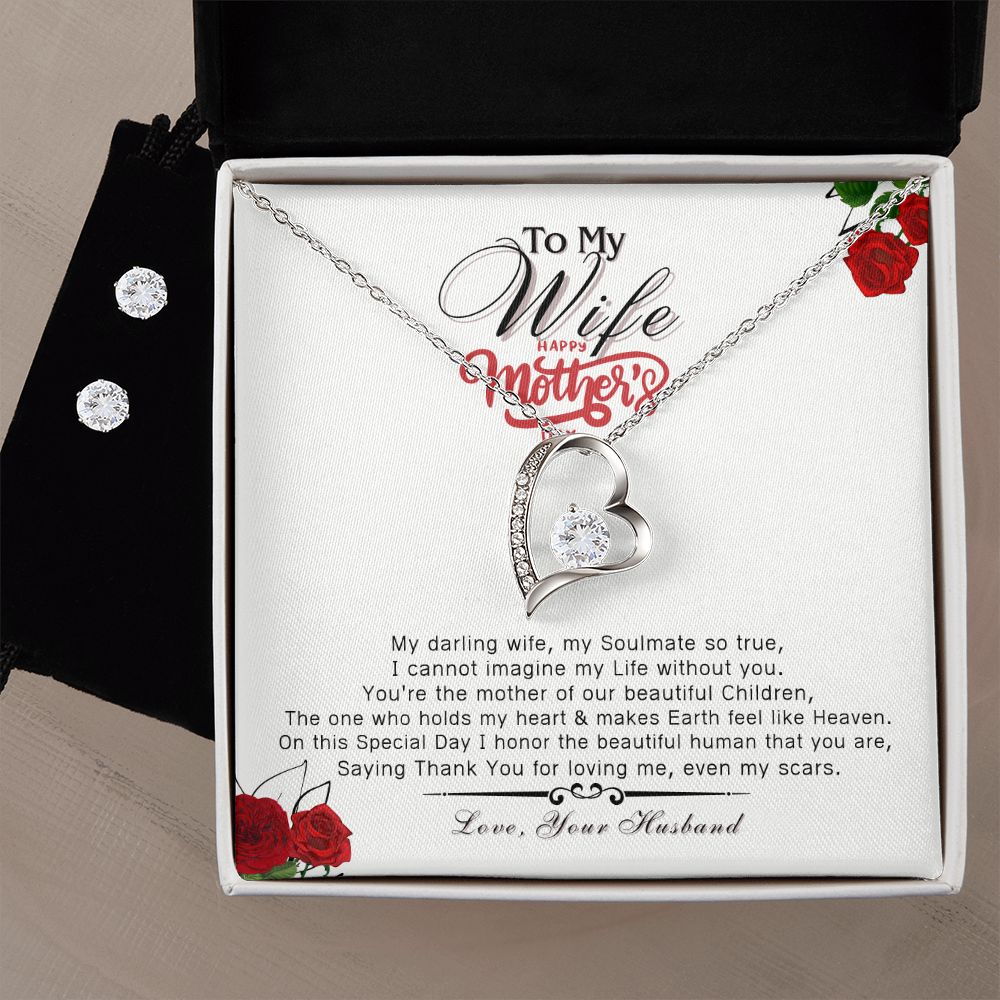 To My Wife, HAPPY MOTHER'S DAY - Forever Love Necklace & Clear CZ Earrings - the Perfect "I Love you" Gift!