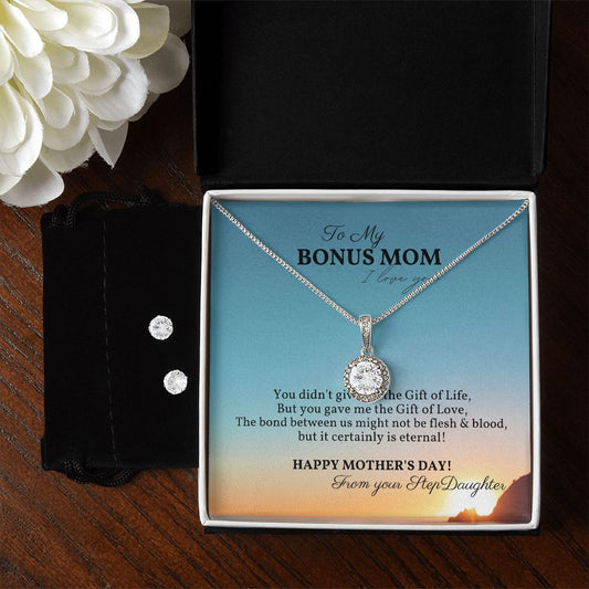 To my Bonus Mom - Eternal Hope Necklace & Clear CZ Earrings Set - Perfect Gift For my Bonus Mom for Mother's Day - I Love You!