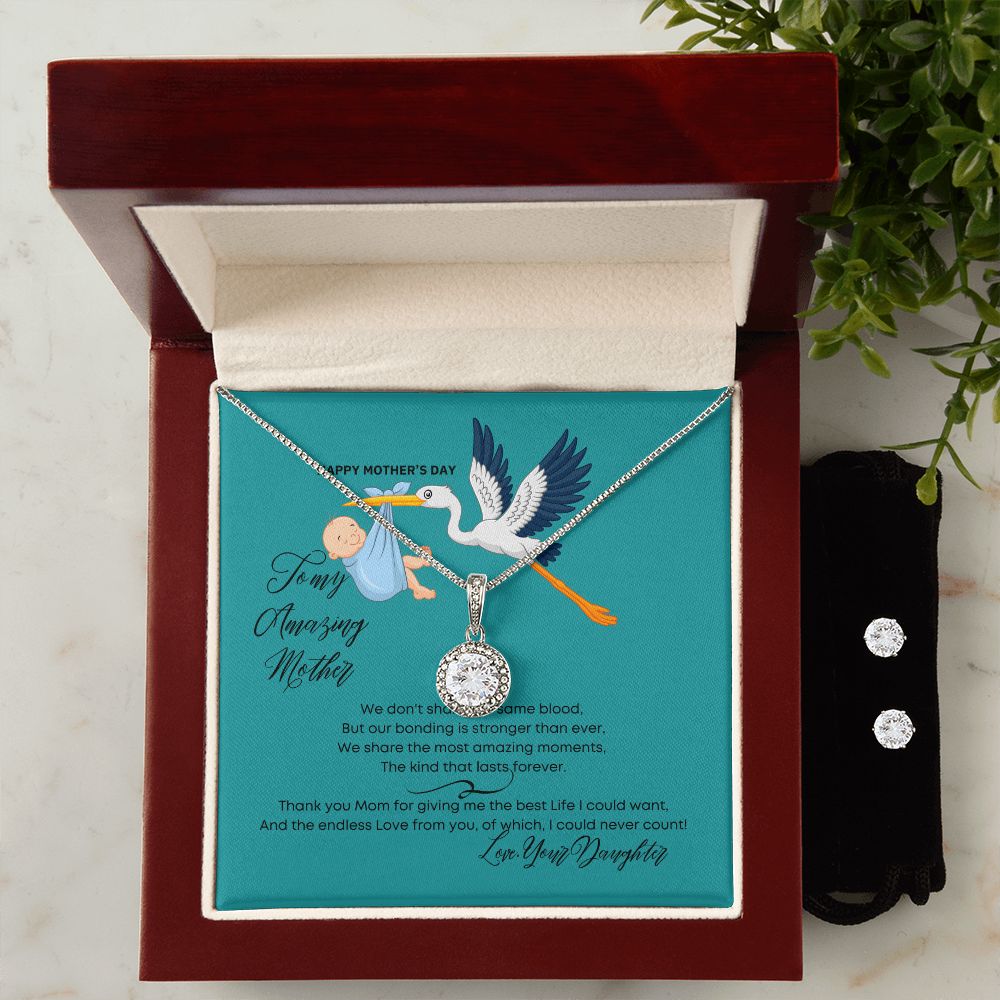 To My Amazing Adopted Mom - Eternal Hope Necklace & Clear CZ Earrings Set - Perfect Gift For Mom for Mother's Day - From her Daughter!
