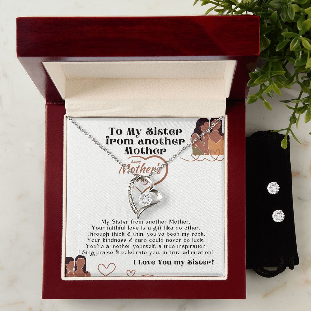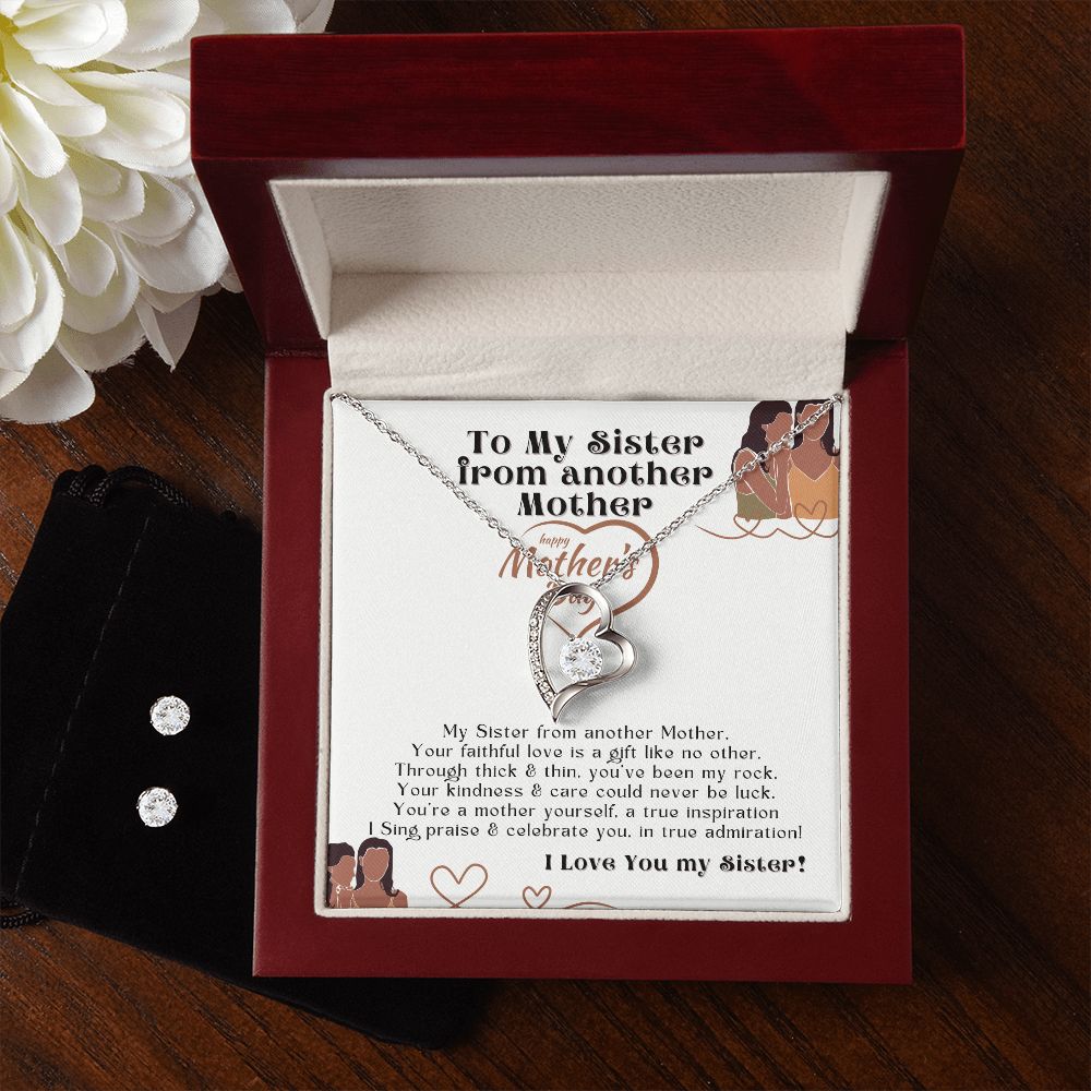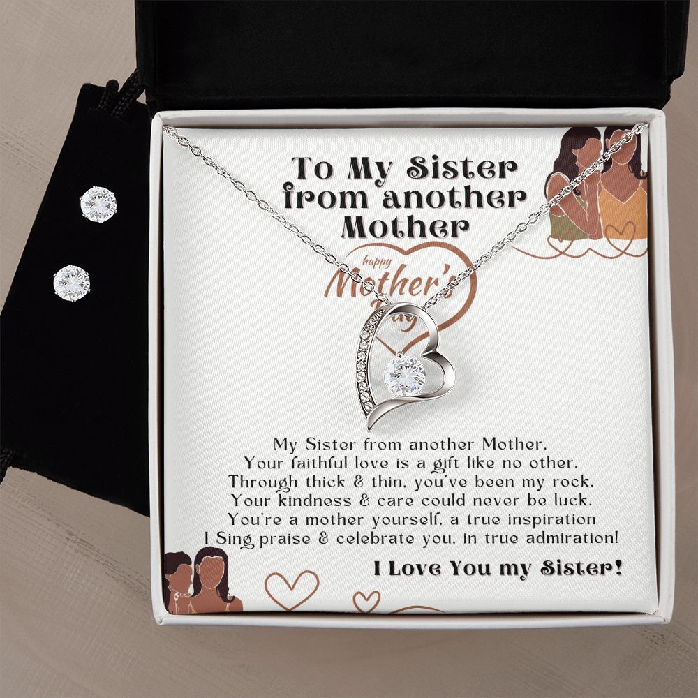 To My Sister from another Mother - Forever Love Necklace & Clear CZ Earrings - the Perfect "Happy Mother's Day" Gift!