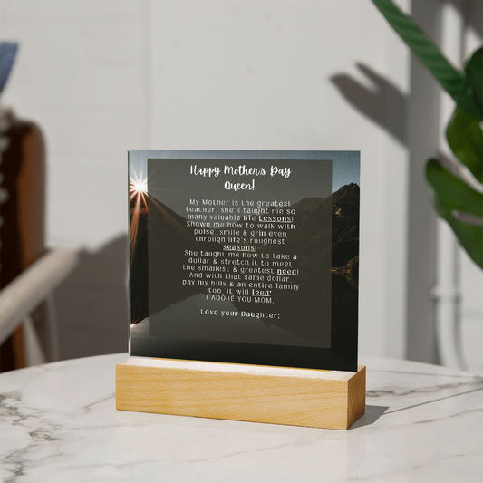 SPECIAL Acrylic Square Shaped Plaque for Mother's Day, from her loving Daughter is Perfect. Be sure to upgrade to the LED wooden base!