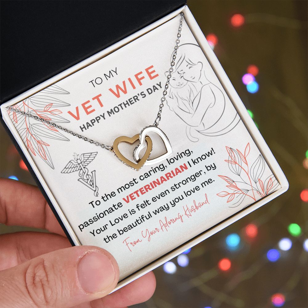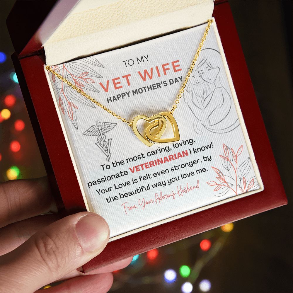Interlocking Heart Necklace - The perfect Gift she'll love - Happy Mother's Day to my Vet Wife!
