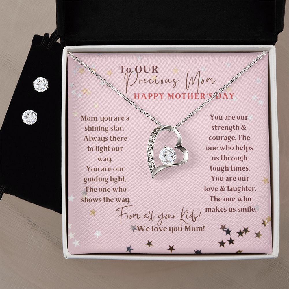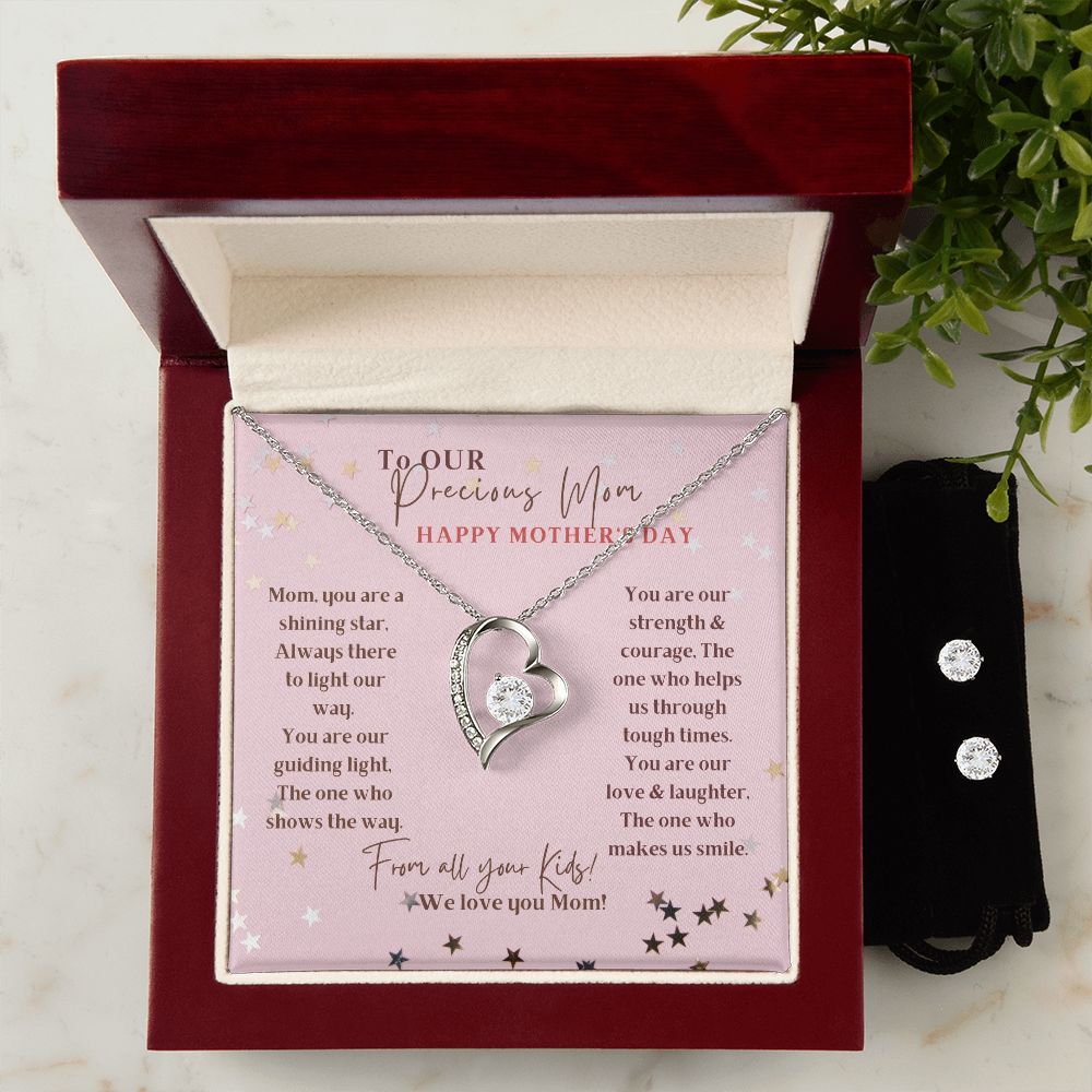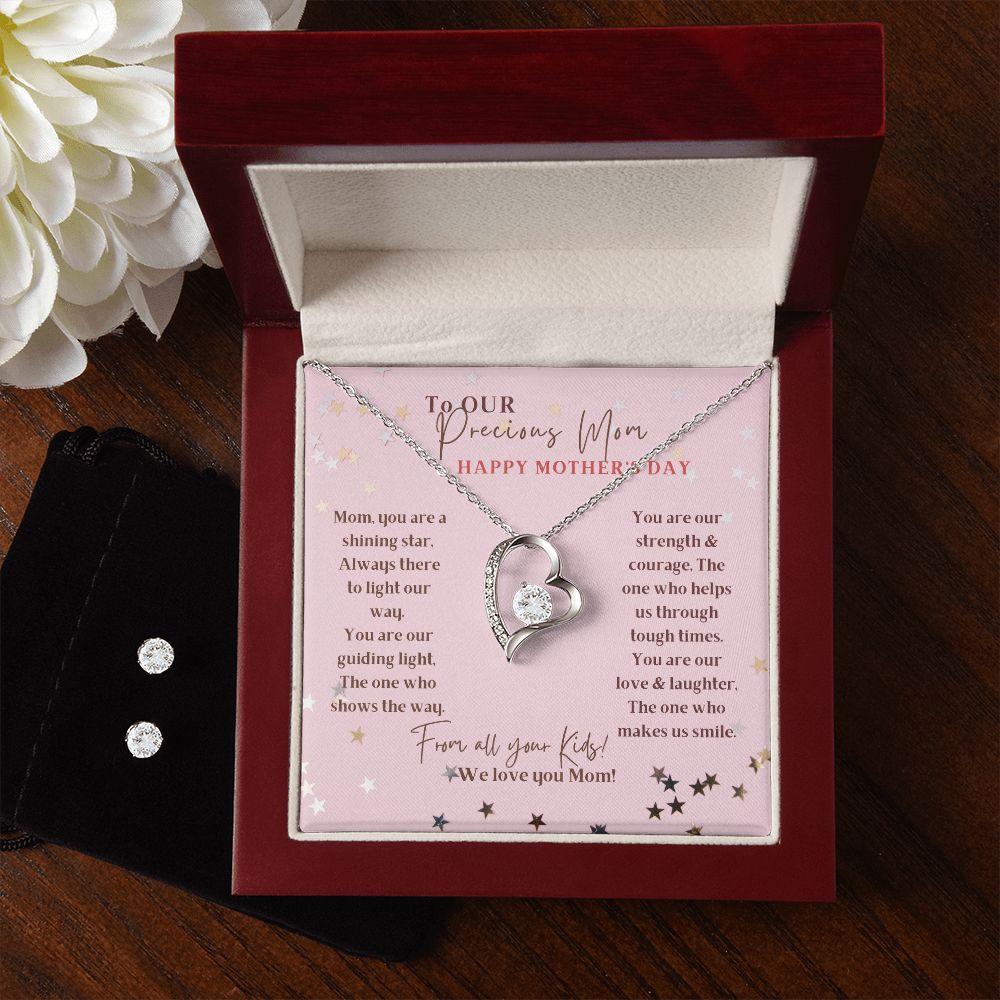 Juego de collar Forever Love y aretes de circonitas transparentes: el regalo perfecto para decir "A nuestra preciosa mamá, feliz día de la madre".