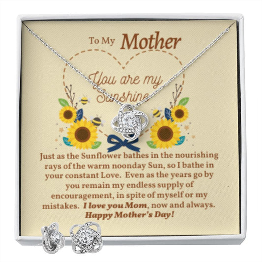 Feliz Día de la Madre O SIMPLEMENTE PORQUE te amamos mamá - Juego de aretes y collar Love Knot - ¡A ella le encantará este regalo!