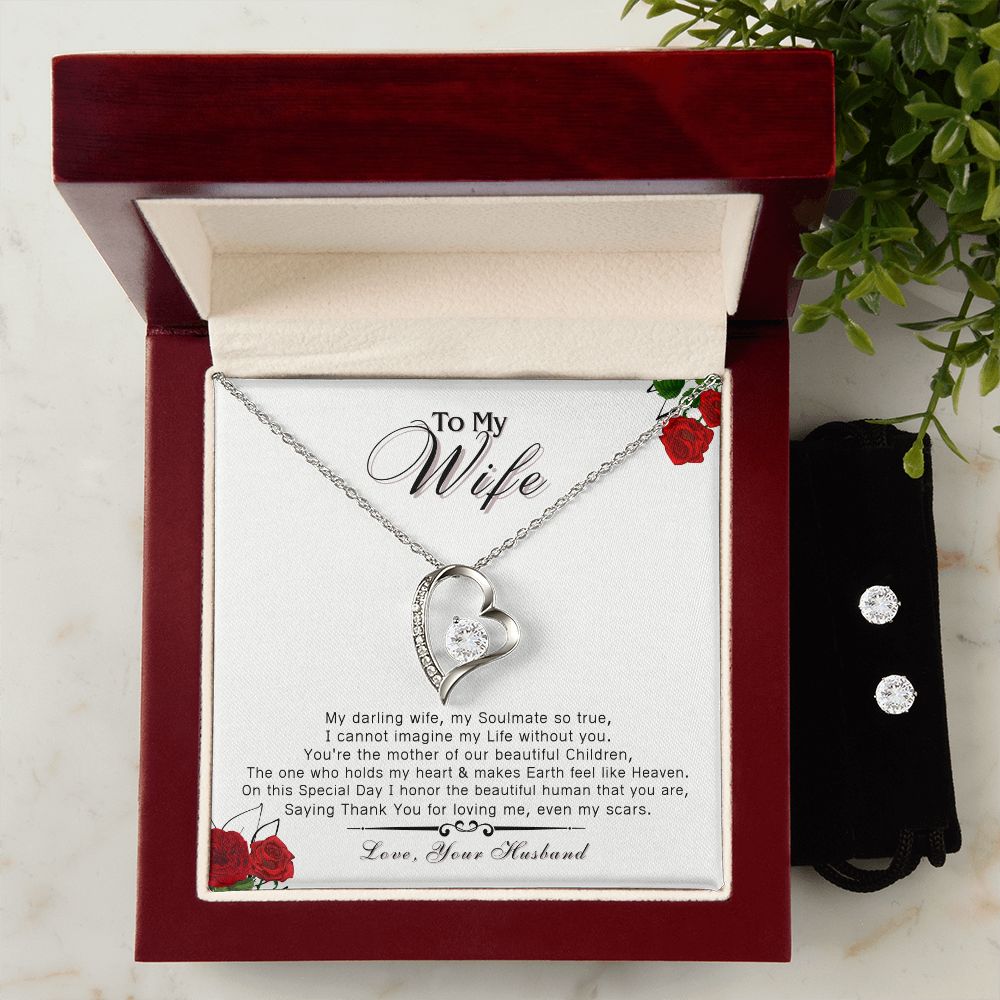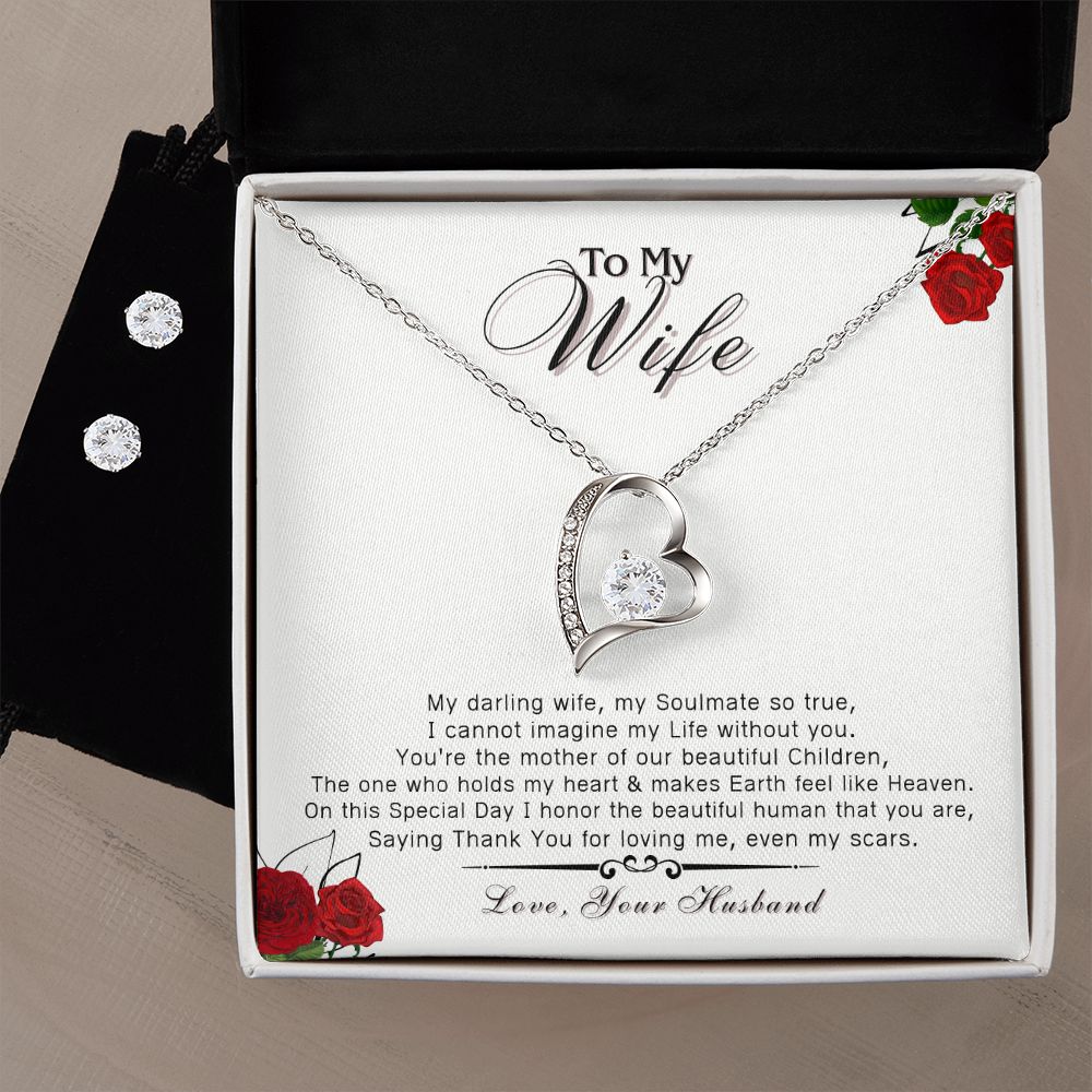 To My Wife, You are Loved - Forever Love Necklace & Clear CZ Earrings - the Perfect Gift for ANY Occassion!