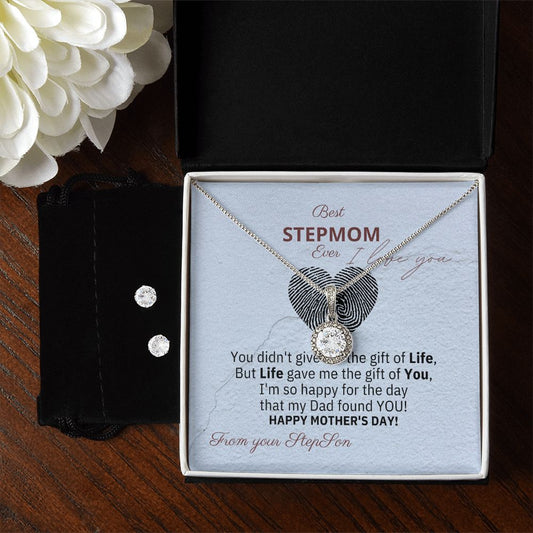 Juego de collar Eternal Hope y aretes de circonia cúbica transparente - Regalo perfecto para la madrastra para el Día de la Madre - ¡De su hijastro!