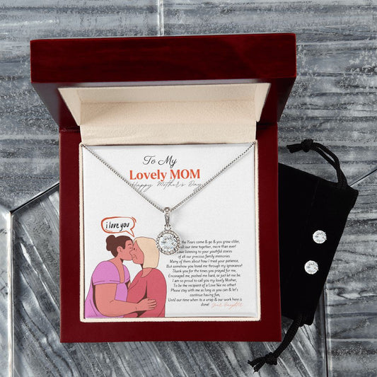 Juego de collar Eternal Hope y aretes de circonia cúbica transparente - Regalo perfecto para mi encantadora mamá para el Día de la Madre - ¡De parte de su hija!