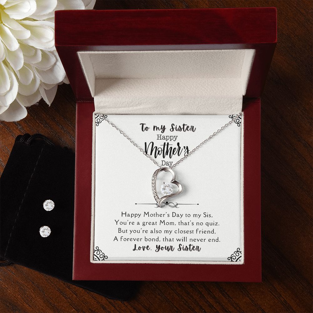 HAPPY MOTHER'S DAY to my Sister - Forever Love Necklace & Clear CZ Earrings - the Perfect "You are Loved" Gift!