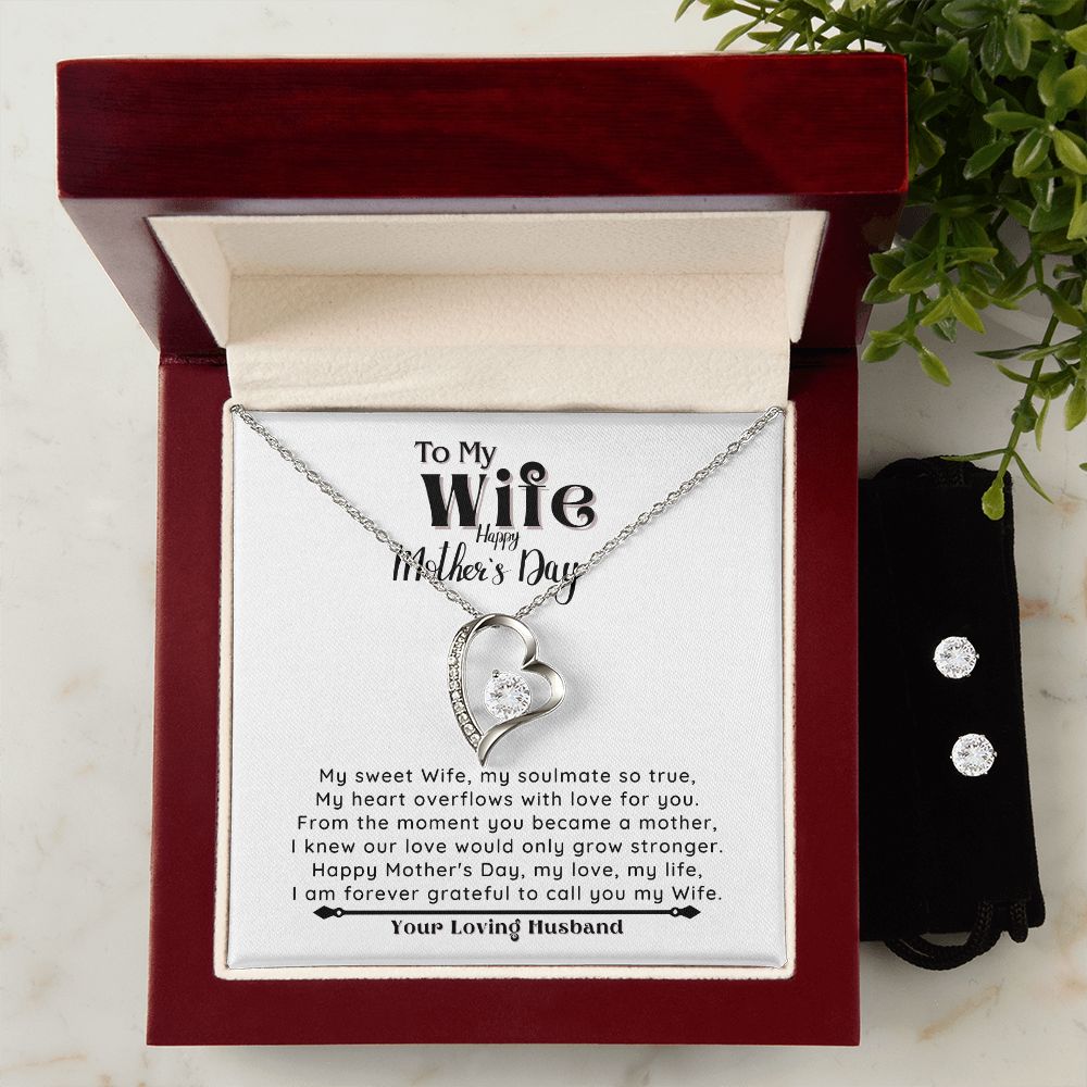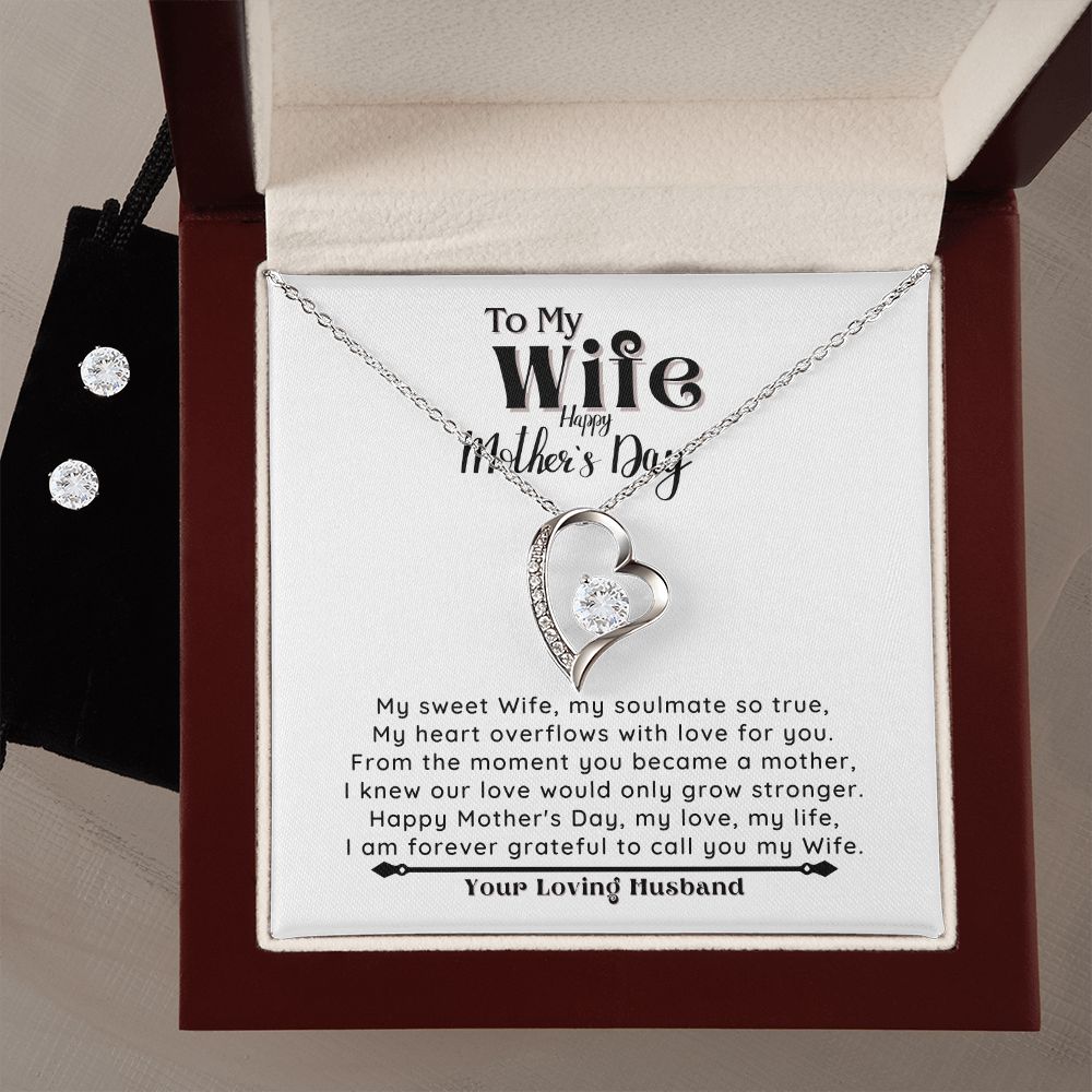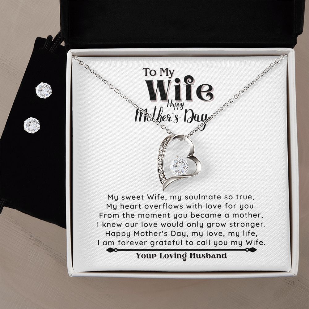 HAPPY MOTHER'S DAY to my Wife - Forever Love Necklace & Clear CZ Earrings - the Perfect Gift from your Loving Husband!