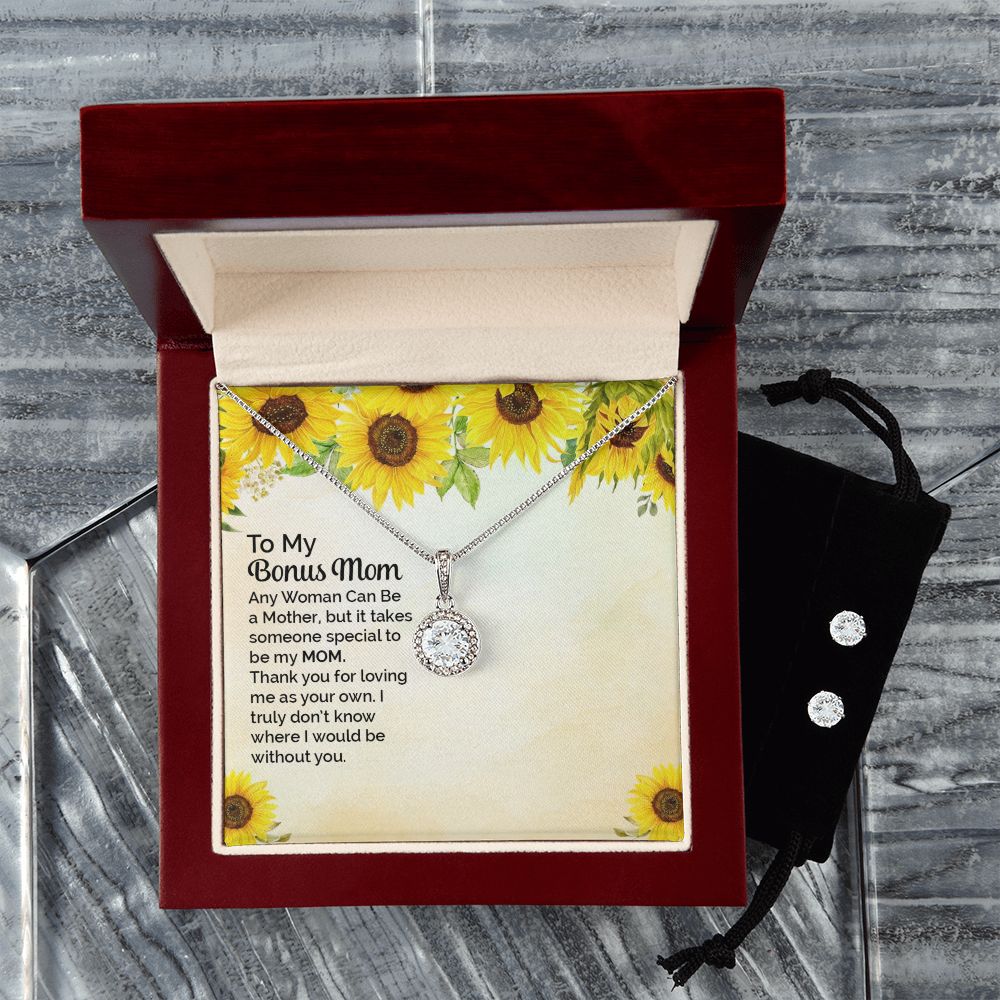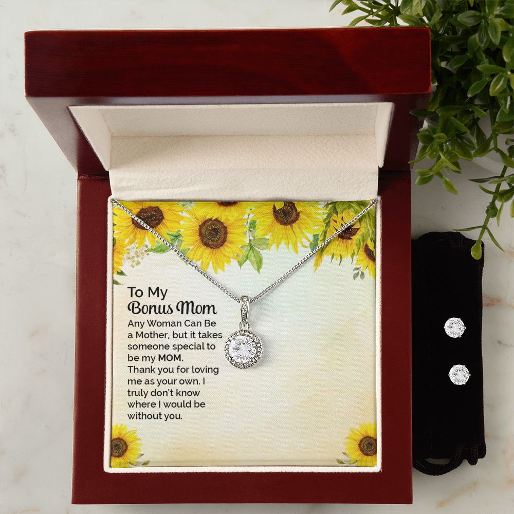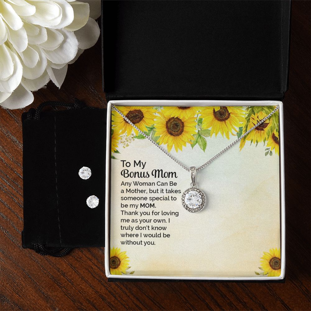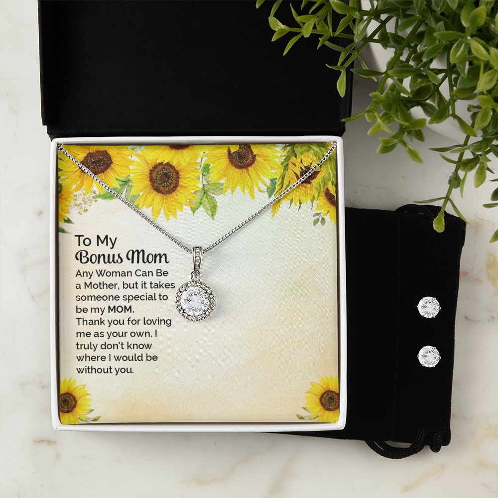 To my Bonus Mom - Eternal Hope Necklace & Clear CZ Earrings Set - Perfect Gift For my Bonus Mom for Mother's Day - I Love You!