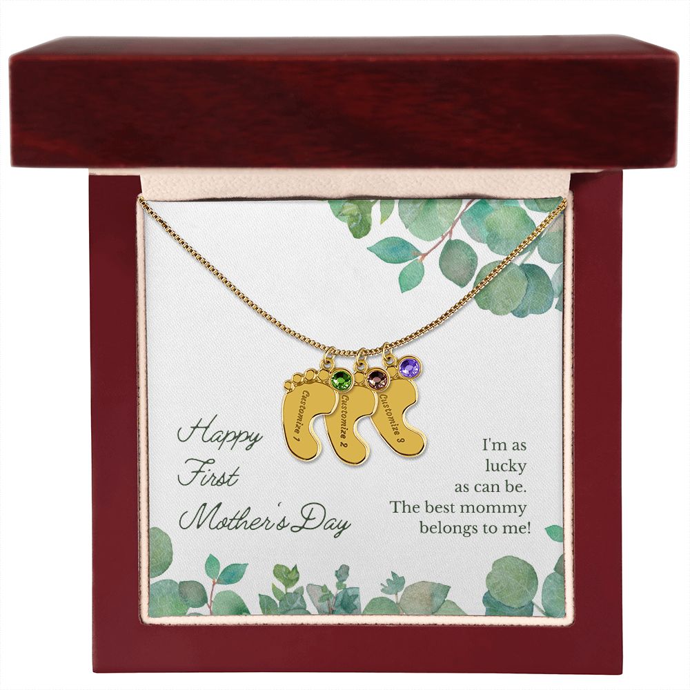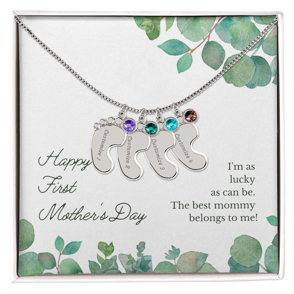 Happy First Mother's Day - PERSONALIZED Baby Feet Necklace with Birthstone - FOR MOM - Your Children Celebration you Mom - You are so Loved!
