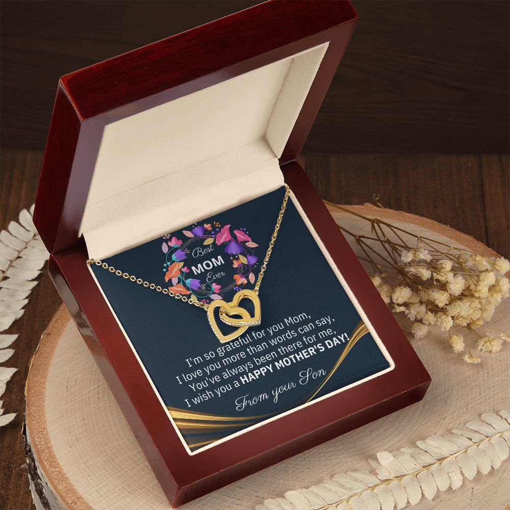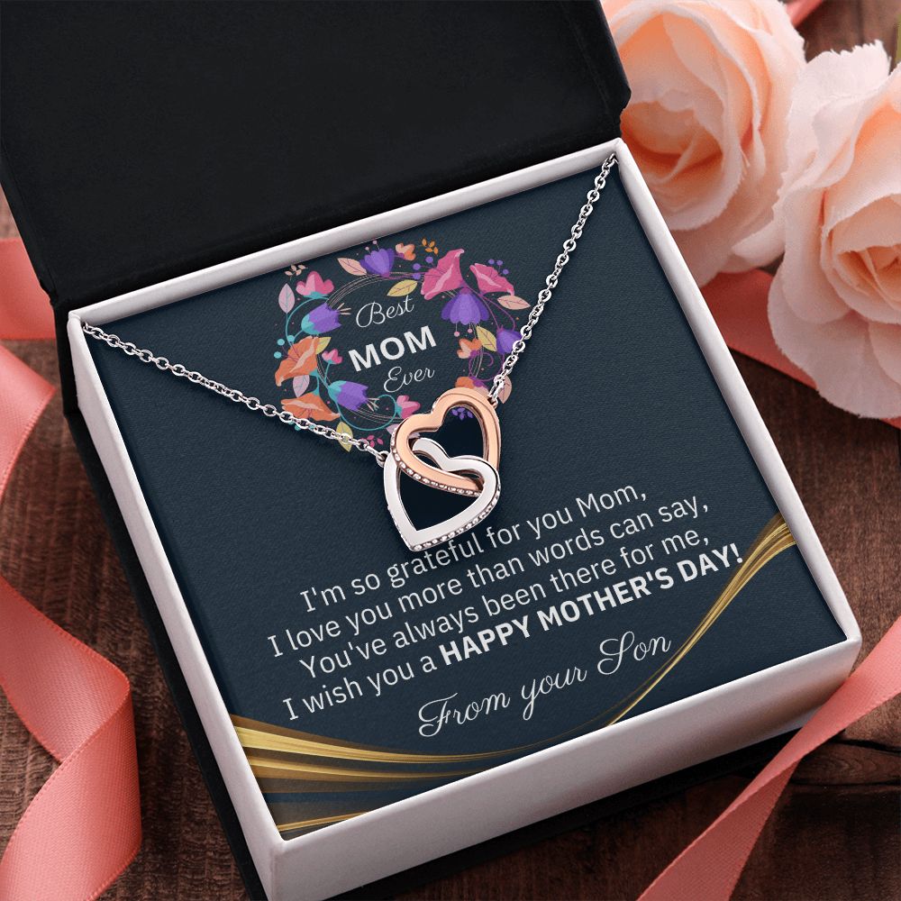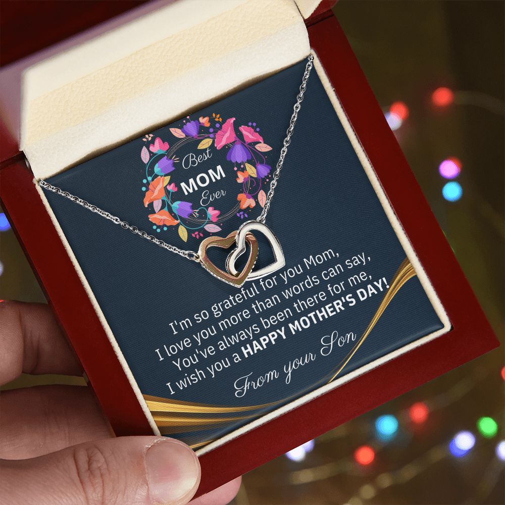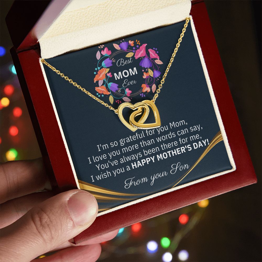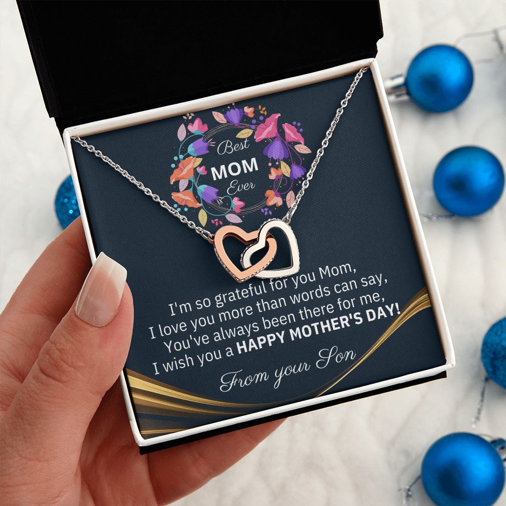 BEST Mom Ever - Interlocking Heart Necklace - The perfect Gift she'll love, from your Son!