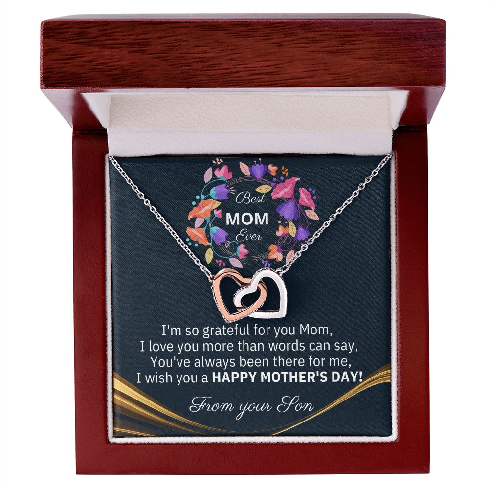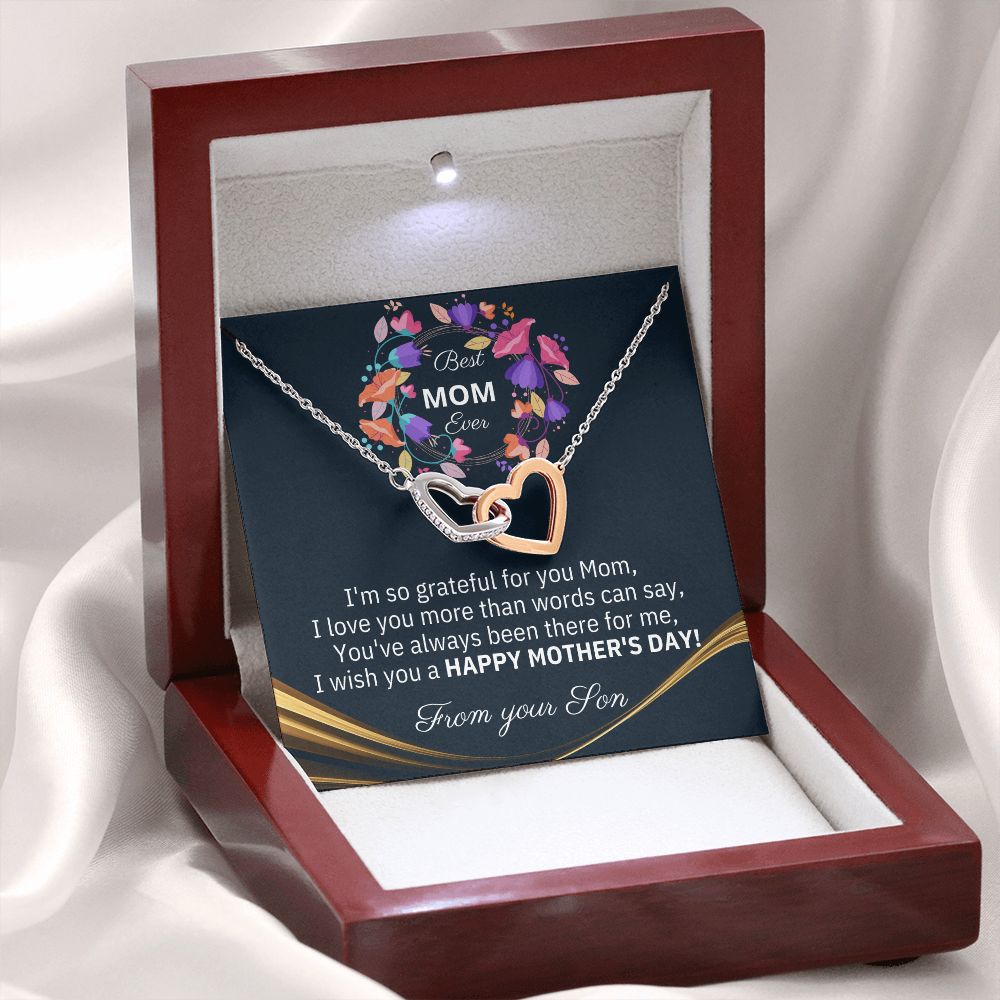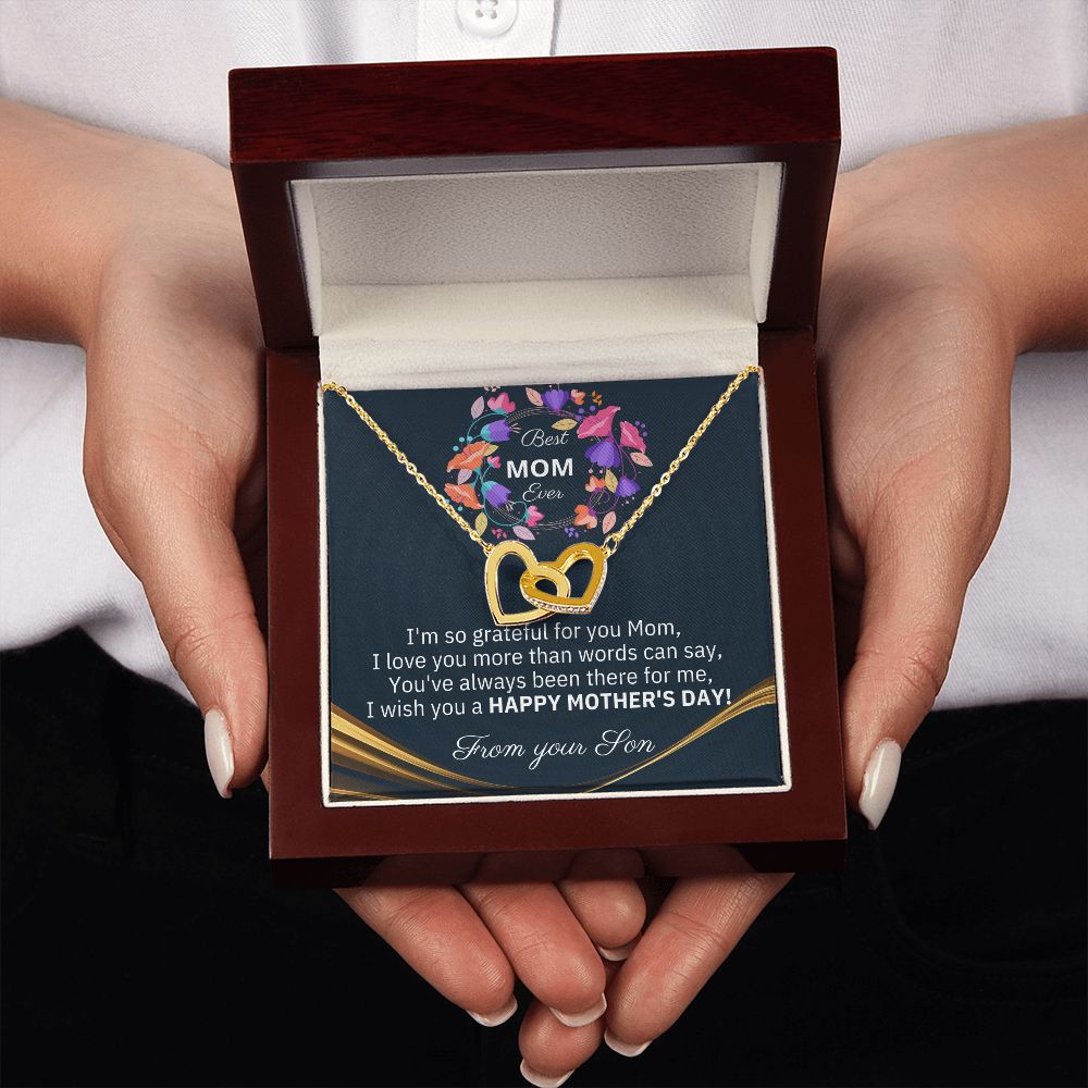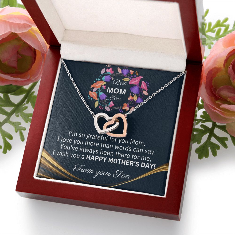 BEST Mom Ever - Interlocking Heart Necklace - The perfect Gift she'll love, from your Son!