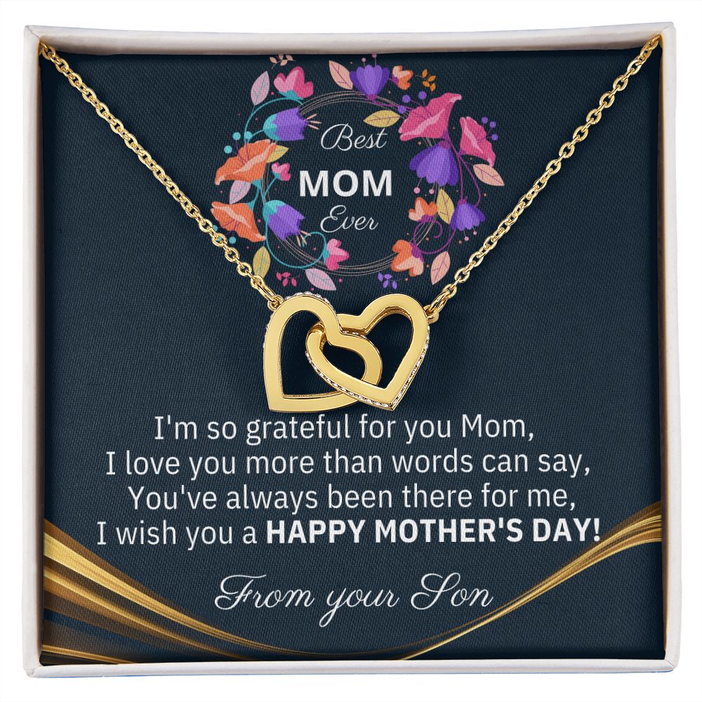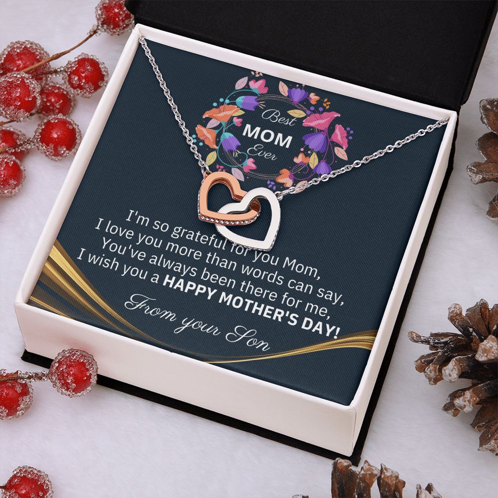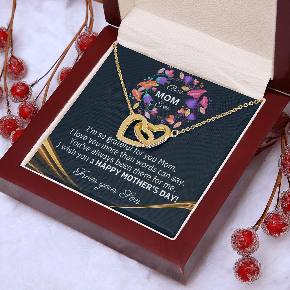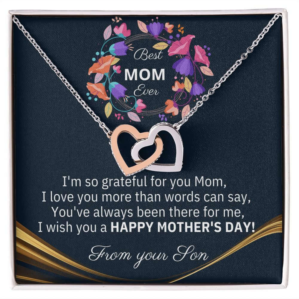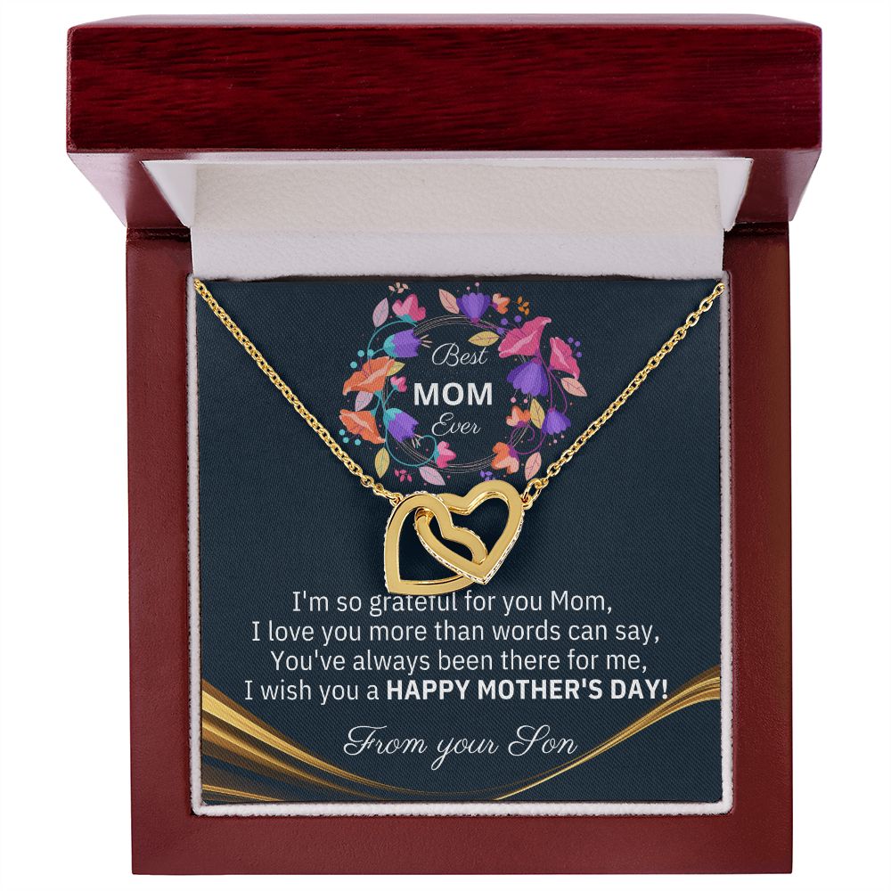 BEST Mom Ever - Interlocking Heart Necklace - The perfect Gift she'll love, from your Son!